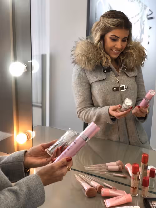 Evite ao máximo os produtos denominados Mate. Eles são mais secos, tanto na sua composição como no toque. Assim, os batons mates, bases mates tendem a ressecar a pele, e evite os pós compactos pois podem te deixar com o aspecto craquelado, finalize somente com blush e iluminador. A escolha certa é por produtos à base de água, cremosos ou com hidratante, que além de maquiar vão cumprir a função de nos proteger e ainda cuidar da pele.