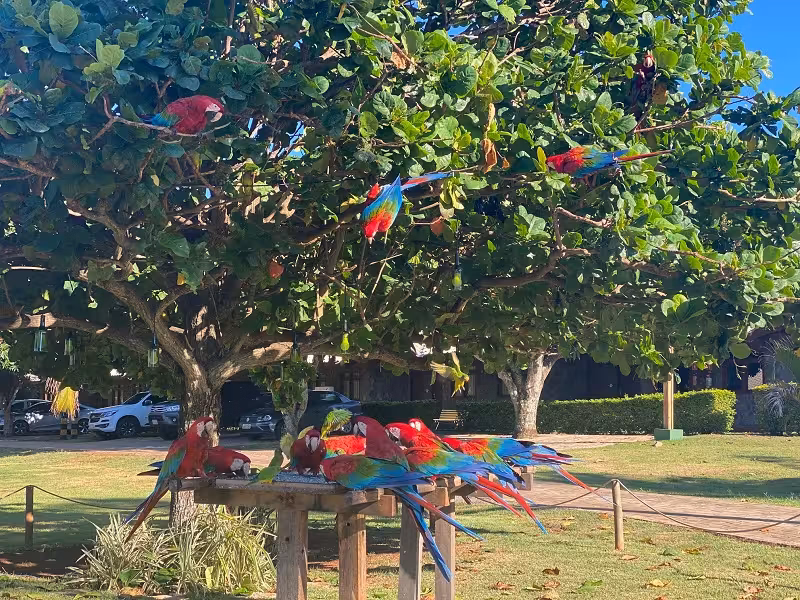 Ali vivem cerca de 50 casais de araras, porém algumas só aparecem no período de reprodução, que vai de julho a novembro. Infelizmente fomos na época errada, vimos somente umas 4 araras, tinha mais no nosso hotel que ali. Porém recebi mensagens dizendo que na época certa é divino, que o passeio tem que estar no roteiro!! Acho que vou ter que volta hein.