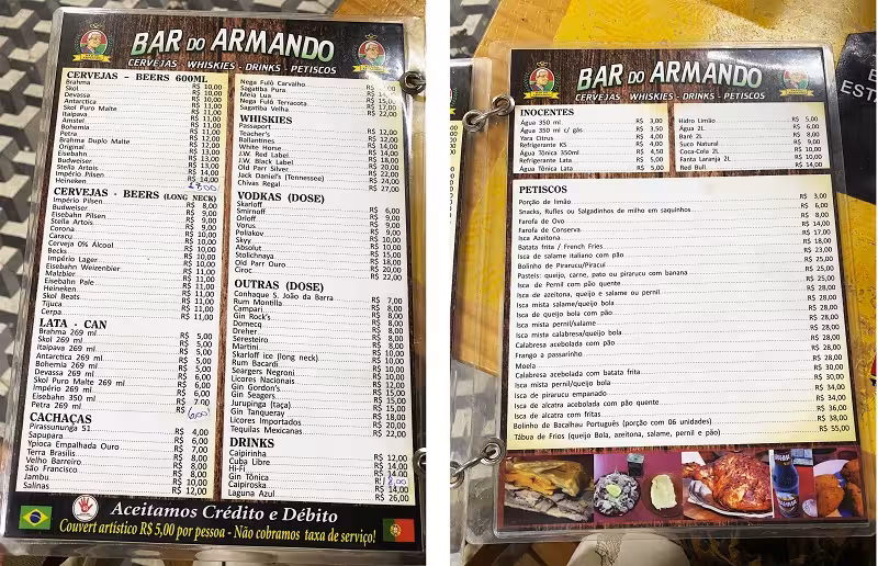 A cerveja vem bem gelada e para acompanhar um petisco de pernil e salame. Para animar o , música ao vivo.