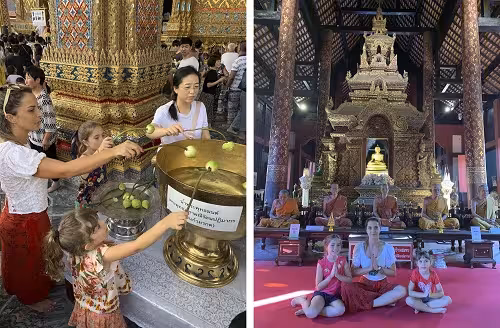 O melhor período para visitar a Tailândia vai de novembro a março, quando a temperatura fica em torno de 30 graus. Já de abril a outubro pode chegar a 45ºC e chove muito no país. As crianças amaram a viagem. É um destino com uma cultura bem particular, modo de vida diferente, com praias paradisíacas e um povo muito acolhedor!