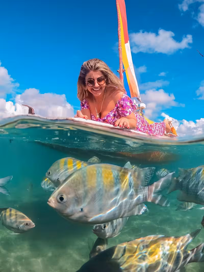 O passeio de jangada pelas piscinas naturais é uma das principais atrações de Porto de Galinhas. A paisagem paradisíaca com águas azuis e calmas, permite observar os peixes e torna a experiência inesquecível. Para conseguir ver os peixes e os corais expostos e caminhar pelos arrecifes é importante que a maré esteja baixa. Então, anota a dica para ficar de olho na Tábua das Mares e escolher o melhor dia e horário para garantir um passeio ainda mais perfeito.
