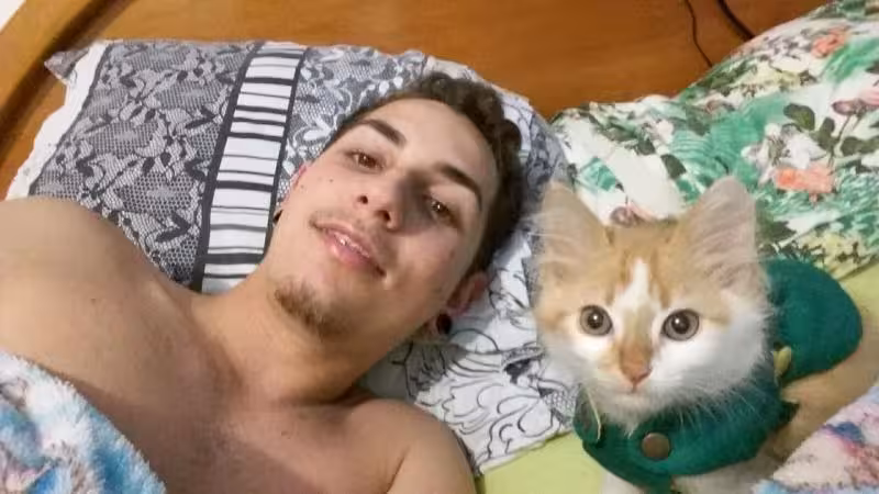 Maicon e a esposa adotaram o lindo Felix quando ele nasceu. Hoje o gatinho pesa 8 quilos e é a alegria da família. O pet adora sair na rua para brincar em cima da árvore. Quando o tutor sai de casa, Felix fica lhe esperando no portão para pedir comida. O gato também é preguiçoso e dorme quase o tempo todo. Ele é especial para o dono e todos na casa o amam.