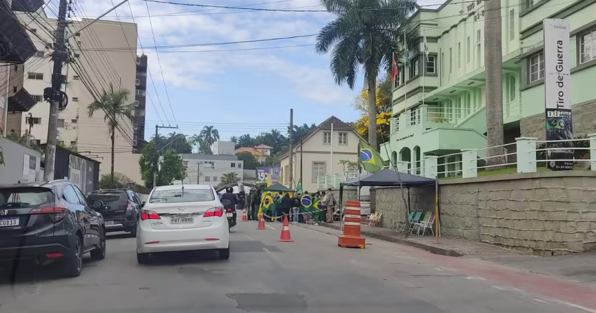 Manifestantes amanheceram na frente do Tiro de Guerra, no bairro São Luiz, em Brusque, na manhã desta quinta-feira, 3. Por volta das 7h, cerca de 20 pessoas estavam em frente ao local.