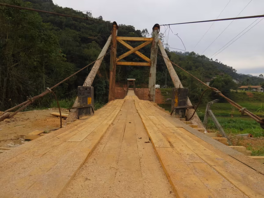 A Secretaria de Obras e Serviços Urbanos concluiu nesta sexta-feira, 30, a manutenção da ponte pênsil da Cristalina que dá acesso ao bairro Lageado Baixo, em Guabiruba.