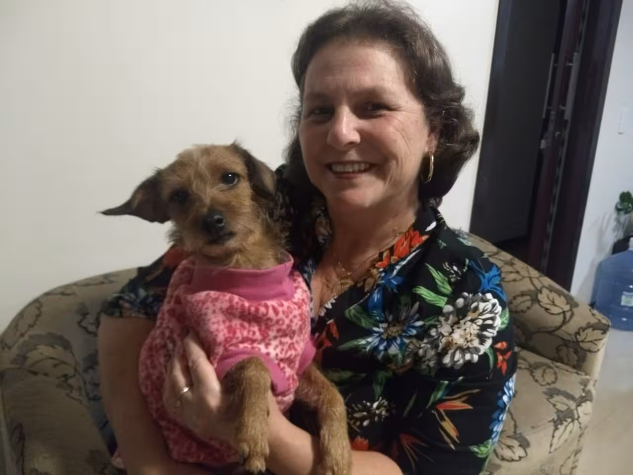 Tutora: Margit A. R. Gamba Idade: 55 anos Profissão: Artesã Bairro: Primeiro de Maio Pets: Malu Idade: 6 anos Raça: Sem raça definida A Malu foi encontrada por voluntárias da Acapra com um andarilho na rodovia. Ela estava com febre e com as patinhas assadas, pois veio de Balneário Camboriú até Brusque caminhando. As voluntárias perguntaram se poderiam levar a Malu com elas e o homem disse que sim, mas pediu um trocado. Elas tinham R$ 4,50 e deram ao mendigo. Depois disso a Malu foi encaminhada para a Margit, que é lar temporário da entidade. Foi descoberto que a pet estava com cinomose em estado avançado. Um tratamento experimental foi feito com a Malu que conseguiu sobreviver apenas com algumas sequelas. Com o tempo, as sequelas diminuíram e hoje a Malu é muito feliz com a Margit que decidiu adotar a cachorrinha. A pet ama brincar de buscar a bolinha e tem muito ciumes da tutora. Muito amor por essa dupla.