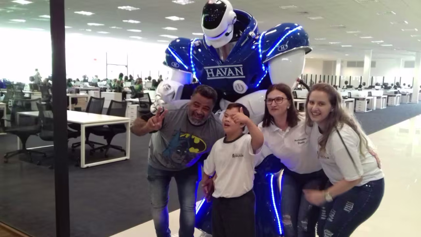 “Ele fazia muita referência ao parque da Havan e também ao túnel que é o estacionamento. No dia que ele se vestiu de robô, decidimos gravar um vídeo e postar na página da escola no Facebook, com a intenção que chegasse até o pessoal da Havan”, lembra o educador social.