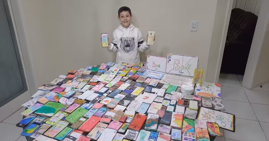 Mairon Tomasi, 10 anos, já fez mais de 200 modelos de celulares da marca