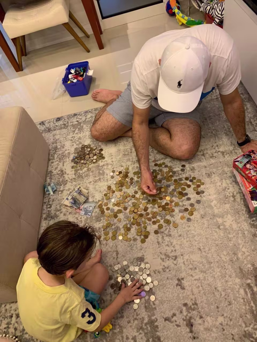 Ele e o pai Rodrigo, ainda no sábado à noite, abriram o cofrinho e contaram as moedas guardadas. A quantia doada pelo menino foi de R$ 234,30.