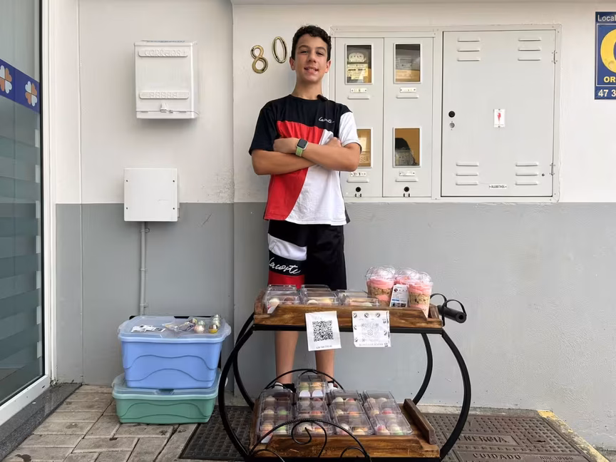 Menino vende doces no Centro de Brusque e sonha se tornar chef de cozinha