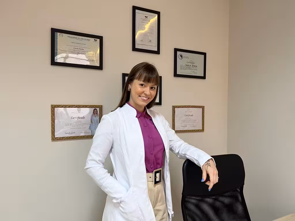 Camila Dunka, sócia-proprietária da clínica, é estetacosmetóloga e conta mais de 8 anos de experiência da área. Além de ser formada pela Univali, a profissional também passou por diversas especializações antes de desenvolver o método.