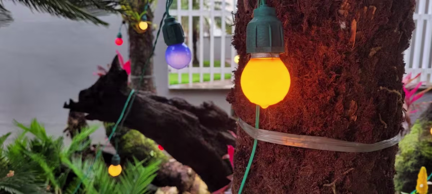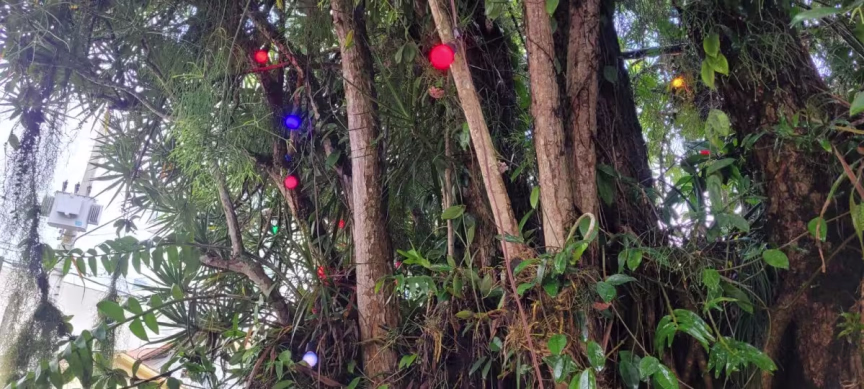 Foram colocadas algumas decorações de natal como piscas-piscas em torno das árvores e a família Noel, além dos pinheiros com caixas de presentes e do próprio presépio. “De noite vocês precisam ver”, conta. As plantas presentes no Mini Sítio também fazem parte da decoração. A decoração chama atenção de quem passa pela rua durante o dia, mas Seu Paulo ressalta que de noite a decoração fica melhor ainda. “Vocês precisam ver”, diz. As luzes são ligadas por volta das 19h, quando o dia começa a escurecer, e vão até perto das 23h.