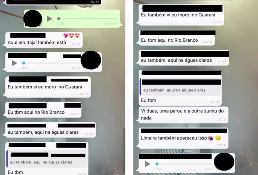 Em um grupo de Whatsapp, pessoas confirmaram que viram as luzes em diferentes lugares.