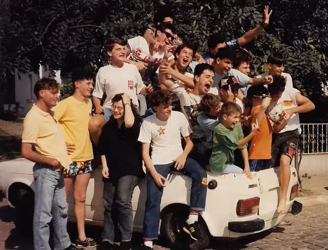 Claro que eu já era mais velho que todos – o ‘decano’ do grupo, no dizer de colunista da Folha de São Paulo. Claro que eu já tinha perdido muitas ilusões; mas nem se tratava especificamente disso – de ‘perder as ilusões’ –; mas de sacar que de sonho em sonho, de passo em passo, o que faz valer a caminhada é o que se deixa feito. E a gente fez muito, muito!! Gente, a gente saiu na FOLHA DE SÃO PAULO!!! Hellooooouuuu!!! A FOLHA fez foto da gente; a molecada em frente ao Amarelo Vinte. E olha que era ‘A Folha de São Paulo’ dos bons tempos; áureos tempos do Jornalismo impresso... E nós lá, naquelas folhas. Brusque e as suas ruas de chão batido, atravessadas por pedestres rasteiros, automóveis antigos e carroças e carros-de-mola; Brusque naquelas folhas!! ‘A Capital do Rock no Sul’. Inesquecível. Sem mais: inesquecível.