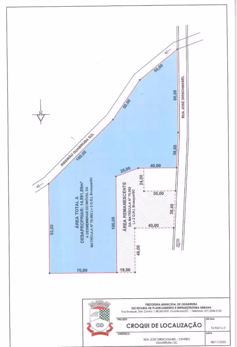 O terreno foi adquirido pela Prefeitura de Guabiruba em novembro de 2022. A área possui um total de 14.591,89 metros quadrados e está localizada na rua José Dirschnabel, nº 1403, bairro Guabiruba Sul. O valor do Investimento foi R$ 2,65 milhões que estão sendo pagos em 36 parcelas, iniciadas em janeiro.