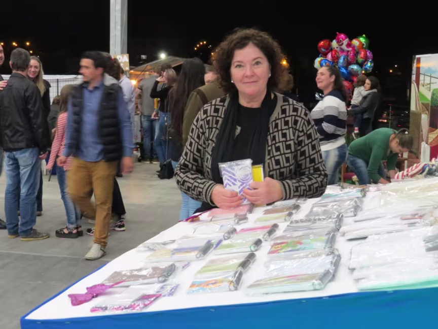 Além das novidades, locais tradicionais da festa atraem os olhos do público. Em uma das barracas com produções dos alunos da Apae, estão caderninhos feitos com papel reciclado e materiais reutilizáveis.