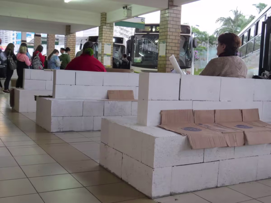 O servidor da prefeitura, Valdir Corrêa de Abreu, passa pelo terminal todos os dias. Para ele, a retirada dos antigos bancos de plástico foi positiva. "Os outros estavam estragados, o concreto é bom porque não quebra", explica.