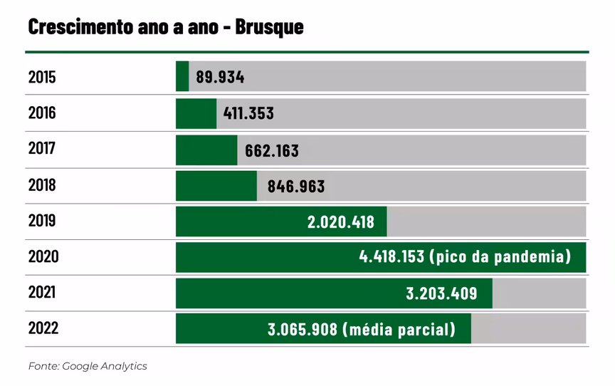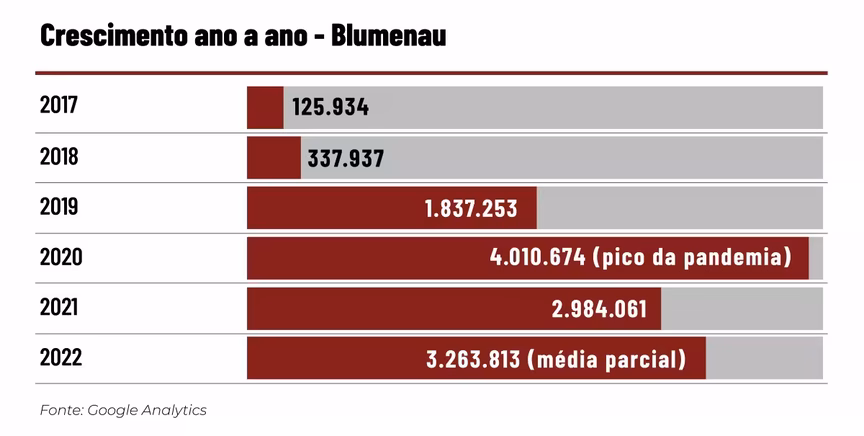 Nas páginas de Facebook, Brusque tem 121,5 mil seguidores, Blumenau tem 96 mil e Joinville tem 49,7 mil. Já nos grupos de Facebook, são 25,7 mil membros em Brusque; 31,7 mil em Blumenau e 18,7 mil em Joinville.
