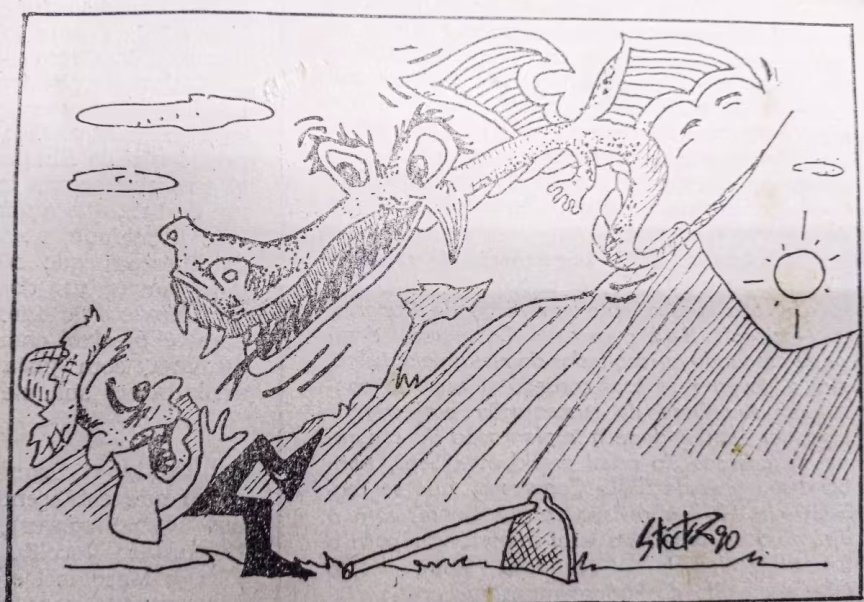 A reportagem trouxe o relato do primeiro morador que afirmou ter visto o dragão, que foi o agricultor Pedro Ismanioto. A ilustração publicada na capa foi feita pelo renomado cartunista Paulo Stocker, criador do personagem Clóvis.
