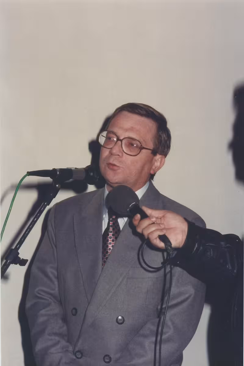 Idealizador do Observatório Astronômico de Brusque, Tadeu Cristovam Mikowski, durante a reinauguração do espaço em 1995 | Foto: Arquivo pessoalSilvino de Souza permaneceu na presidência do clube desde a fundação até 19 de março de 1990. Nesse período, a gestão teve muito trabalho para colocar em ordem toda a documentação da entidade. Com Souza na diretoria, o CAB adquiriu a Declaração de Utilidade Pública.