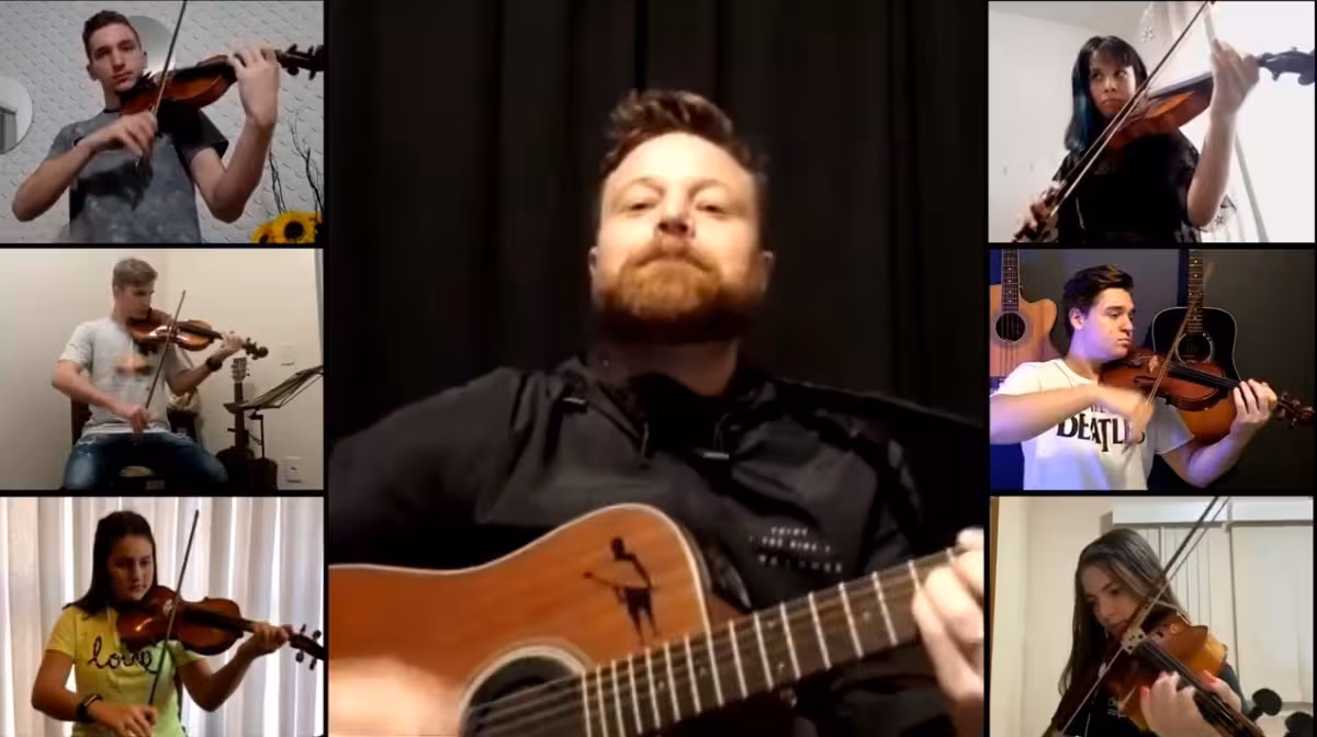 Orquestra Municipal de Guabiruba grava show virtual com Rogerinho Las Flores