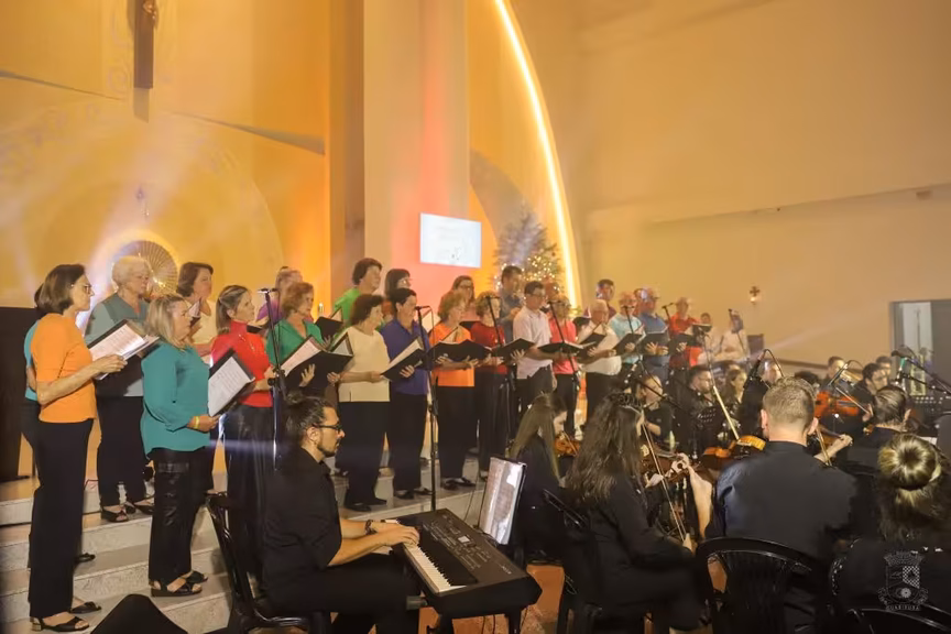 A Orquestra foi regida pelo Maestro Marcelo Heckert, em missa na Igreja Matriz de Guabiruba. O evento foi gratuito e aberto ao público, sendo parte da celebração da programação oficial do Natal Mágico de Guabiruba.