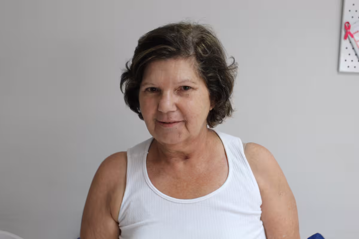 "Eu não sentia nada, descobri ao fazer uma radiografia", conta. Ao saber da doença, ela diz que não pensou em mais nada, decidiu que iria realizar a cirurgia assim que possível. Já recuperada, ela só precisa fazer fisioterapia por conta da operação, e encontra o serviço na Rede Feminina de Combate ao Câncer.