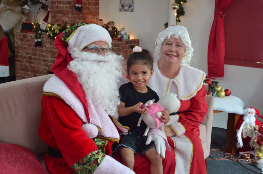 Papai e Mamãe Noel fazem a alegria das famílias na praça Barão de Schneeburg