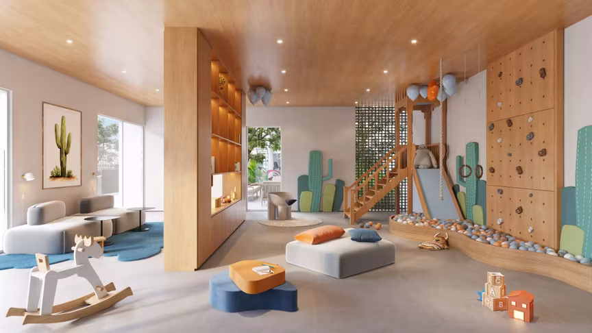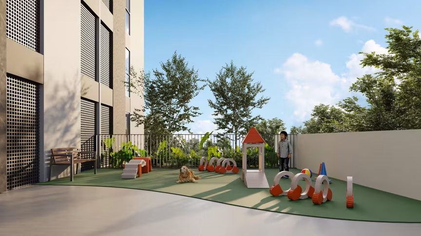A área de lazer é outro destaque: serão 2,4 mil m², incluindo piscina de 25 metros de raia, além de diversos espaços de convivência, planejados de forma proporcional ao número de apartamentos, garantindo conforto e qualidade para todos os moradores.