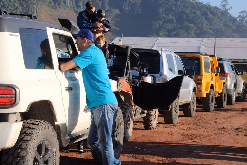 Morador de Brusque, Diego Martins levou a esposa Juliana e o filho Théo, de 6 anos, para o Passeio Expedition. Eles participam do passeio da Fenajeep há seis anos, desde que compraram o Troller. “O carro é para isso mesmo. Desde que compramos, não paramos mais de participar”, conta Martins. A família estava preparada com um lanche básico para passar o dia na estrada e na expectativa por belas paisagens e alguns obstáculos. “O meu filho gosta muito de participar, já está acostumado. A ideia é completar o percurso com tranquilidade, sem nenhuma queda”, diz.