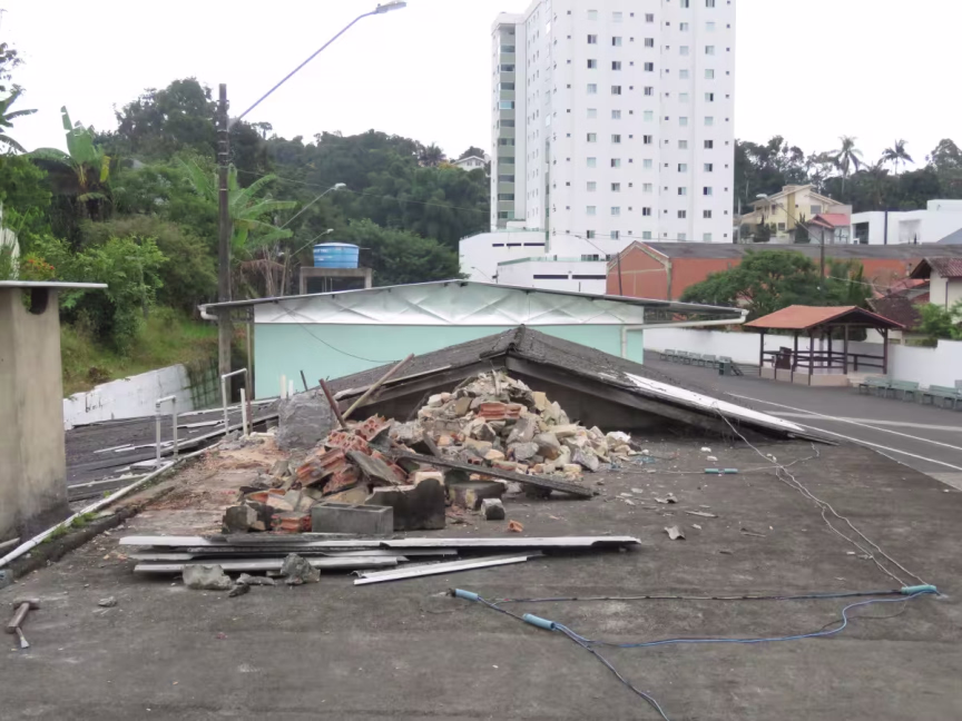 A reforma de dois edifícios do Tiro de Guerra de Brusque, o TG 05-005, já teve início. Uma empresa contratada pela Havan trabalha, neste momento, na sala de instruções. Depois, será a vez do prédio ao lado.