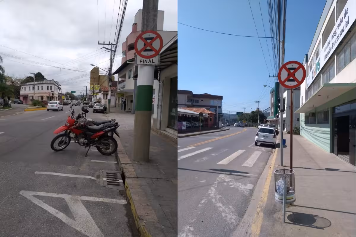 Pereira ressalta que, de acordo com a resolução 180 do Conselho Nacional de Trânsito (Contran), a placa R-6C (proibido parar e estacionar) deve ser colocada no local por motivo de segurança e fluidez do tráfego, quando é necessário que impeça a parada e estacionamento.