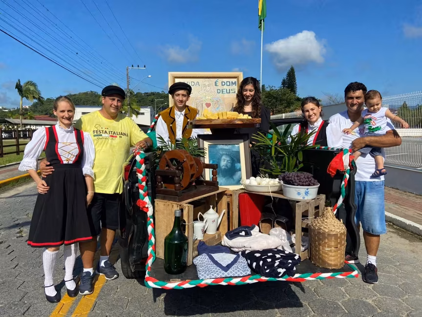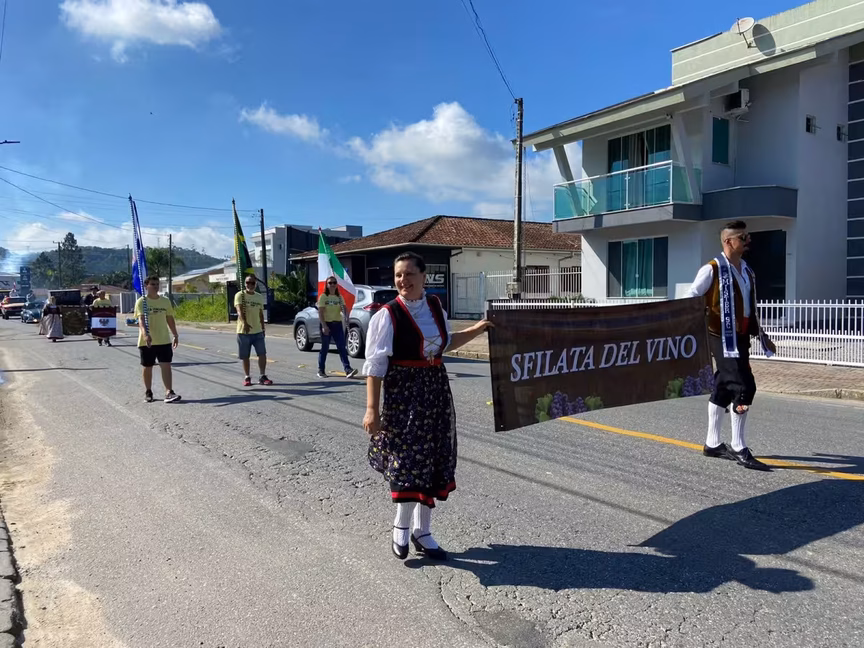 Vestidos com roupas típicas, os descendentes das famílias italianas da cidade mostraram muita criatividade e alegria na hora de levar um pouco das tradições para toda a cidade. O desfile iniciou as 9h da manhã, e teve um trajeto de aproximadamente 5 km, saindo da rotatória próximo a empresa NCA Malhas, no bairro Imigrantes, até a entrada do bairro Pomerânia.