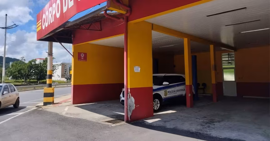 Parte do prédio onde a Polícia Científica está acomodada em Brusque ainda pertence ao Corpo de Bombeiros. No caso, um pedaço da estrutura é dividido e veículos de ambos os órgãos podem ser vistos no local.