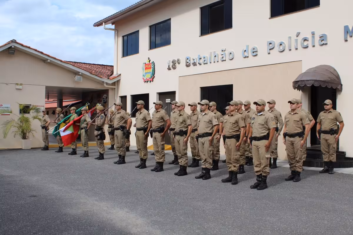 O 18º Batalhão de Polícia Militar (BPM) de Brusque recebeu diversas autoridades e familiares na tarde desta sexta-feira, 31, para acompanharem a cerimônia de promoção de três policiais militares.