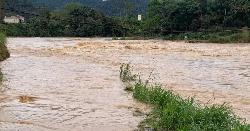 A Prefeitura de Botuverá divulgou o número de famílias ilhadas após as fortes chuvas deste fim de semana deixarem a ponte Henrique Vaneli submersa.