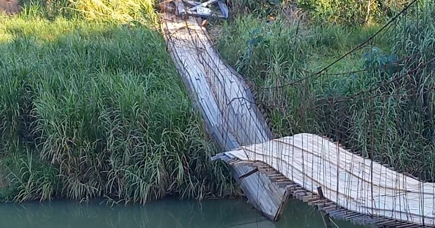 Ponte pênsil da Cristalina cai durante manutenção realizada nesta quarta-feira
