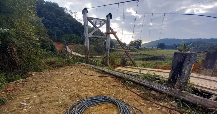 A Ponte Pênsil da Cristalina, no bairro Lageado Baixo, em Guabiruba, caiu durante uma manutenção realizada no início da tarde desta quarta-feira, 17. Horas depois, ela foi reerguida pela Secretaria de Obras de Brusque, que está sendo responsável pela manutenção do local.