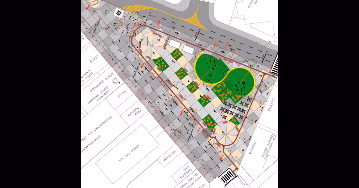 O projeto inclui a instalação de um grande banco de concreto em S, que contorna e passa pela maior área com grama e vegetação. De acordo com a planta, serão instaladas 14 mesas com banquetas, além de diversos canteiros em formato quadrado e bancos de madeira. A iluminação será refeita, mais intensa, com lâmpadas LED.