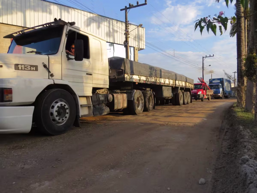 Durante a presença da reportagem no local, diversos veículos pesados passaram pelo trecho. Segundo os moradores, o movimento piora às 18h, durante a semana, o que ocasiona a subida de poeira.