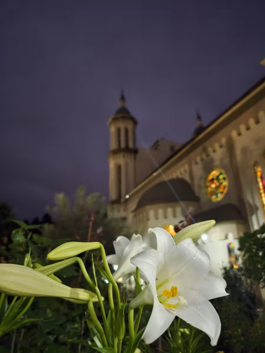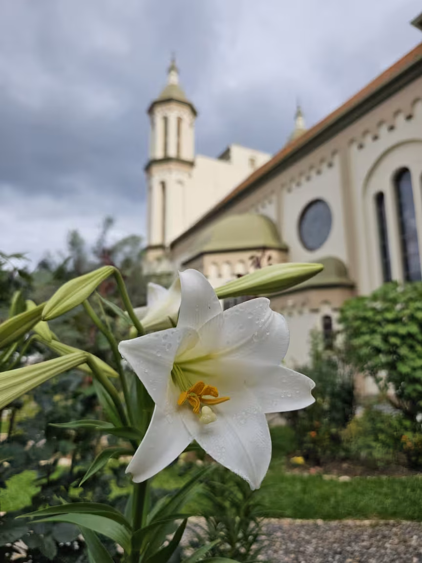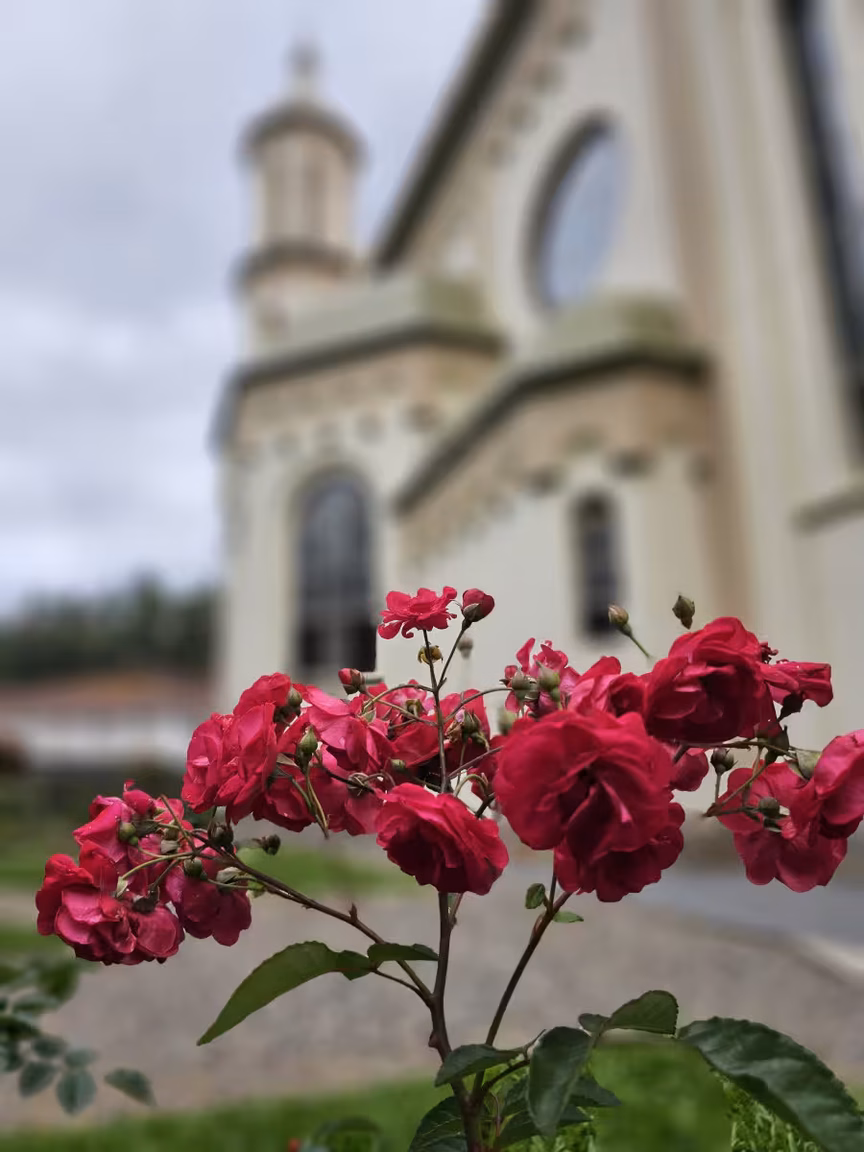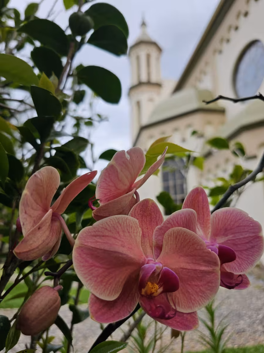 Flores e plantas coloridas adornam cada centímetro, criando uma sinfonia visual que cativa tanto os fiéis que buscam o local para suas preces quanto os visitantes que ali vão em busca de serenidade ou pura admiração.