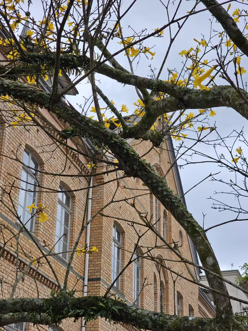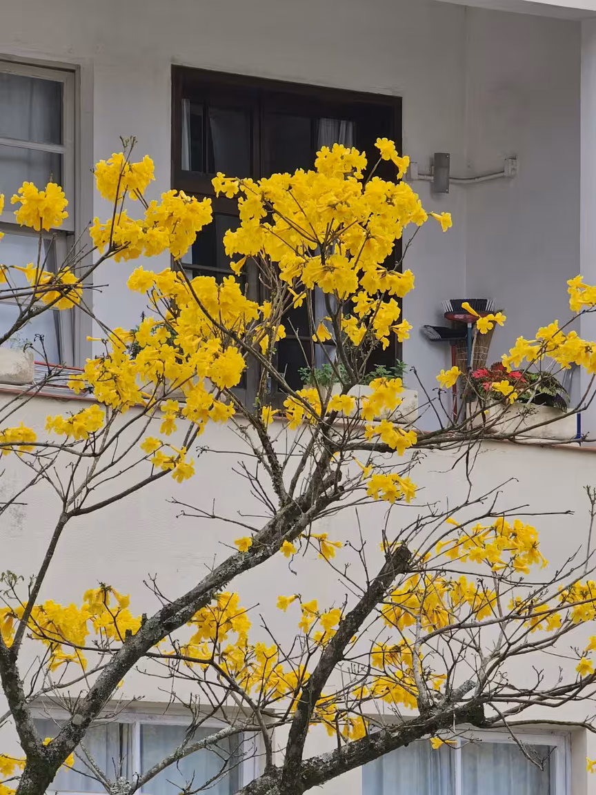 Os ipês-amarelos, em sua plenitude, tingem o ambiente com tons vibrantes, mas não estão sozinhos nesse espetáculo.
