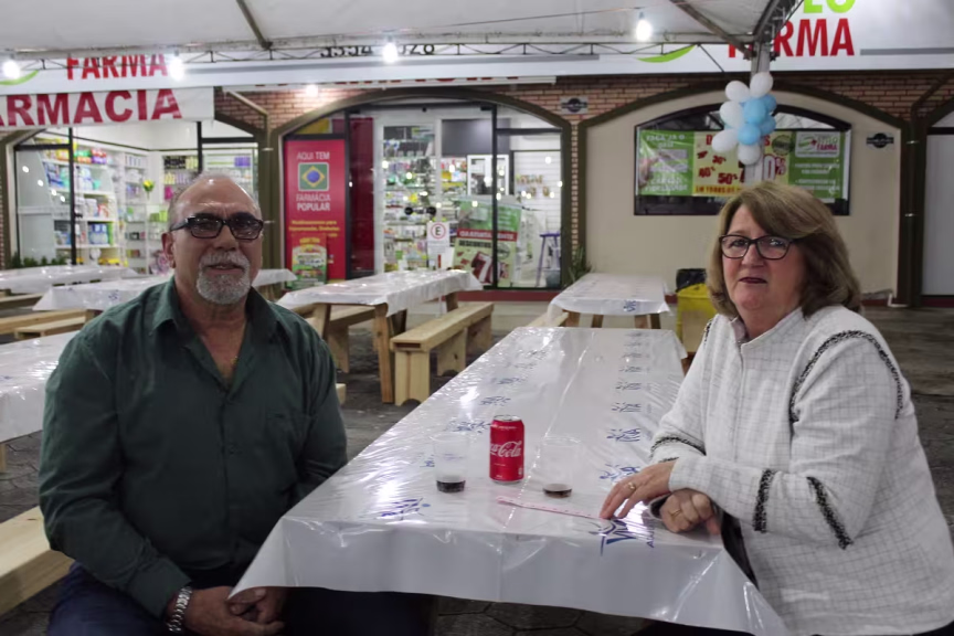 Elisa Horth e Zico Campos são de Brusque e participaram pela primeira vez da festa. Eles costumam frequentar a missa e, a pedido do padre, aproveitaram para ver os festejos neste ano. “Já passamos do prazo de validade para festa, mas vamos acompanhar”, brinca Zico.