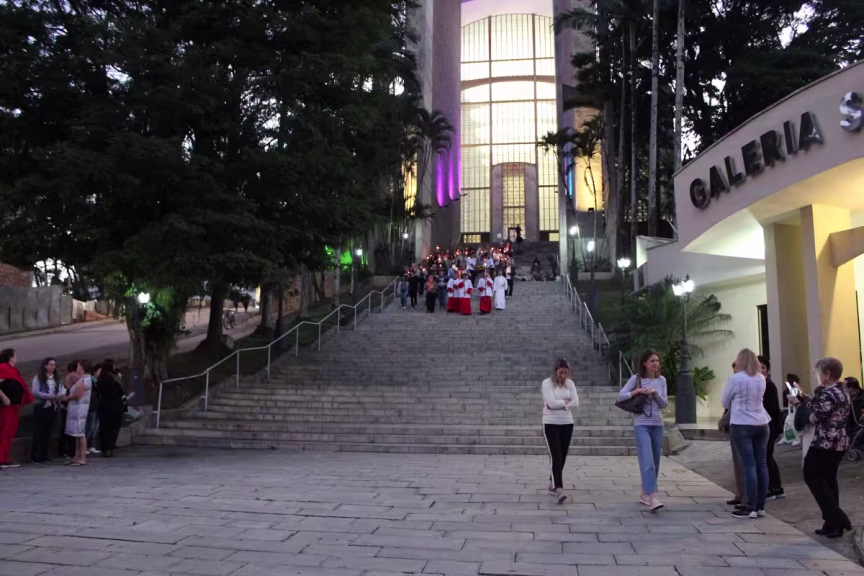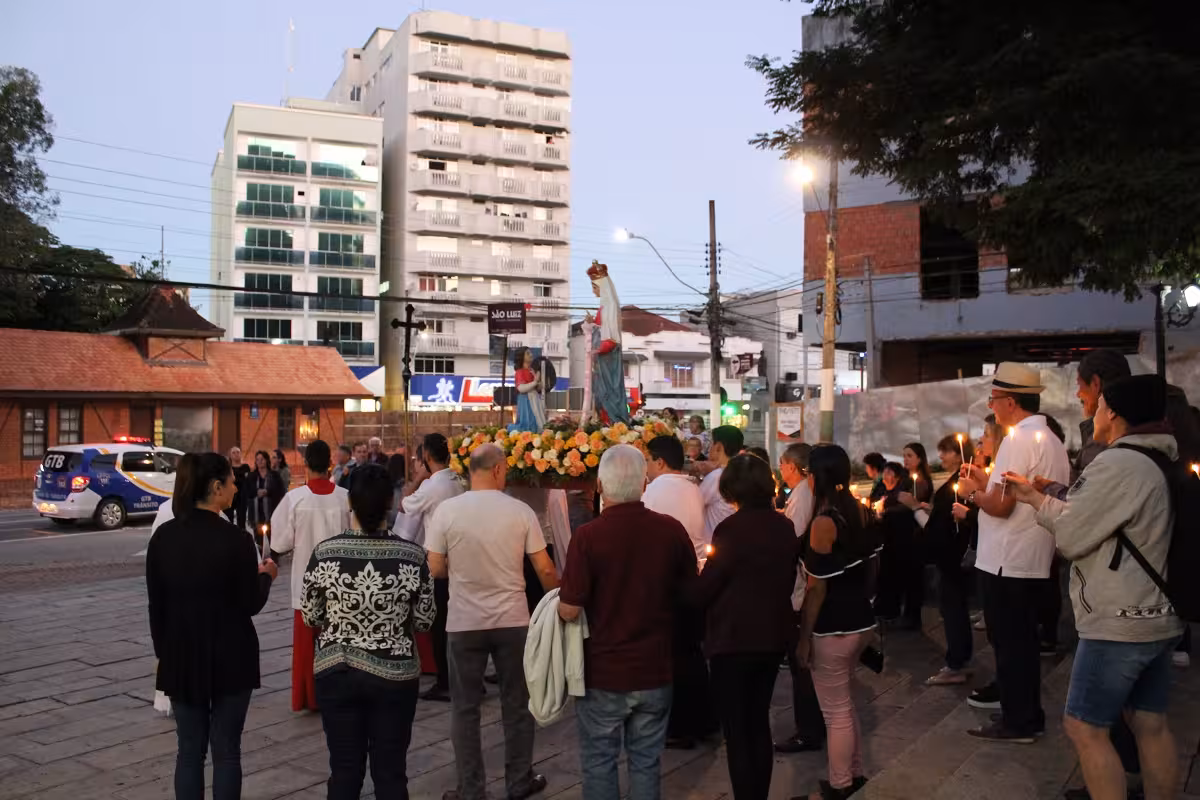 Durante todo o trajeto, que tem quase quatro quilômetros de extensão, os devotos cantam e rezam o terço. “Muitos fiéis já decoram as fachadas das casas com as cores azul e rosa, as cores de Nossa Senhora, outros com banners. Eles buscam de várias formas expressar a fé”.
