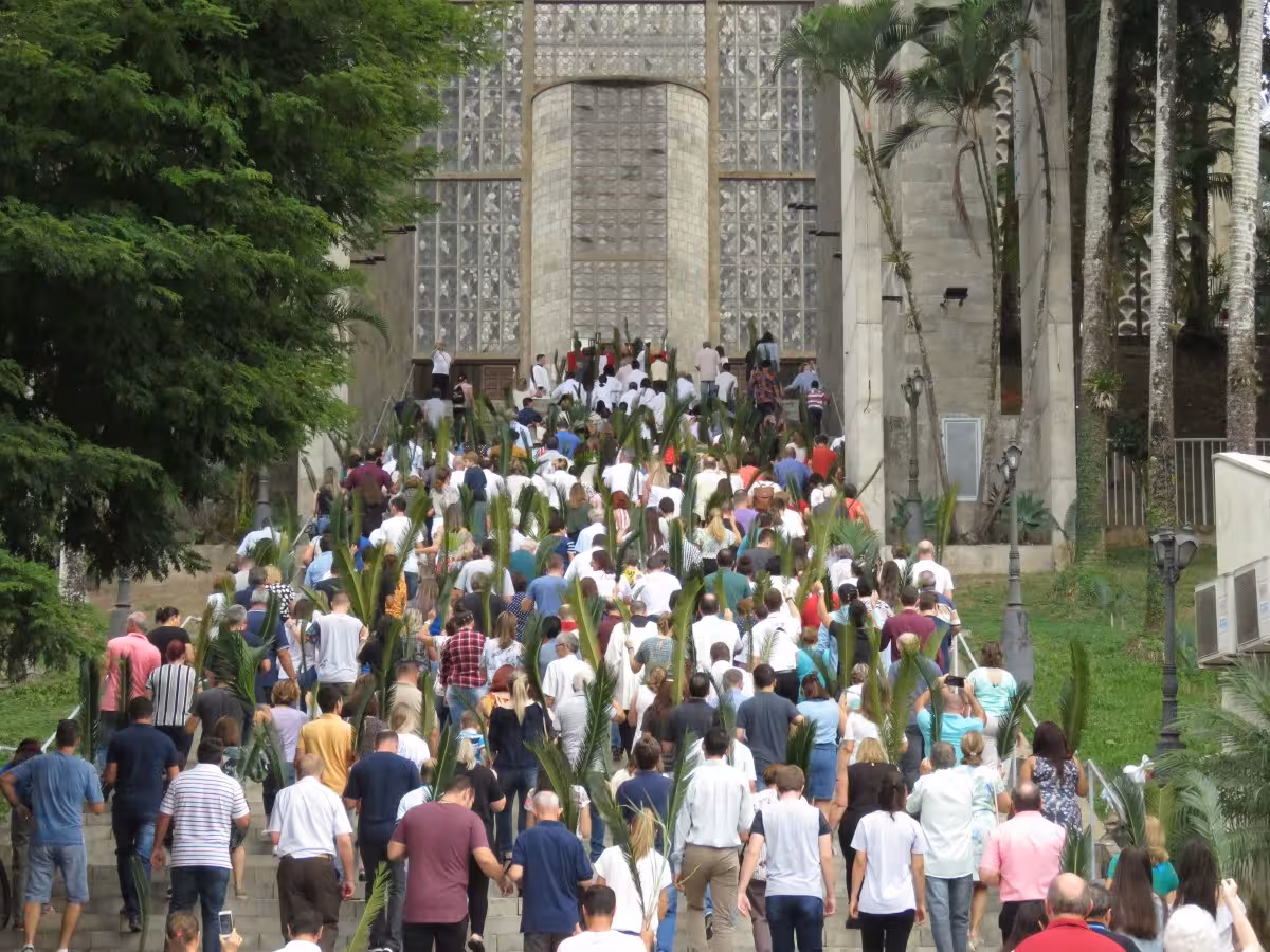 Centenas de pessoas buscaram a renovação da fé em Cristo ao participarem da Procissão de Ramos da Paróquia São Luís Gonzaga, realizada na manhã deste domingo, 14. A caminhada começou por volta das 8h30, saindo do Convento Sagrado Coração de Jesus em direção à igreja Matriz, decorada com ramos abençoados.