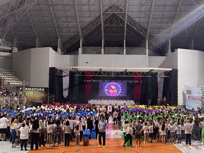 A Arena Brusque ficou lotada na noite desta quarta-feira, 23, para mais uma formatura do Programa Educacional de Resistência às Drogas e à Violência (Proerd). O comandante regional da Polícia Militar, Luis André Pena Viana de Oliveira participou da solenidade.