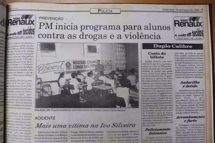 Em março de 1999 a Polícia Militar de Brusque iniciava o Programa Educacional de Resistência às Drogas e à Violência (Proerd), com o intuito de conscientizar as crianças da redes pública e particular de ensino. O programa, que já formou mais de 30 mil crianças em Brusque e região, hoje é aplicado com os alunos do 5º ano de todas as escolas.