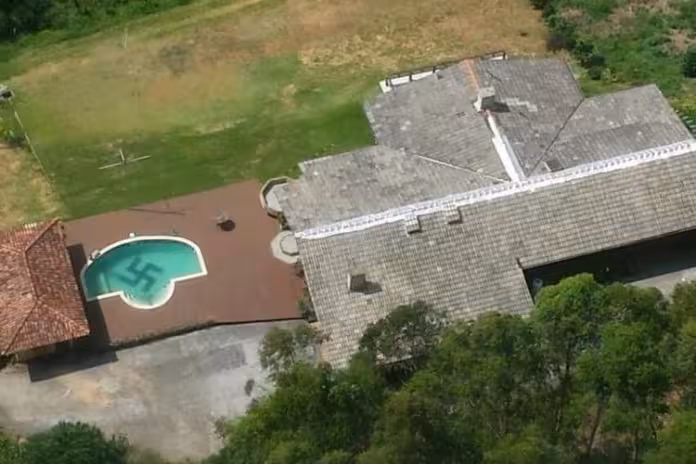 A suástica desenhada na piscina ficou famosa em dezembro de 2014, quando policiais que estavam sobrevoando a área, devido a um sequestro registrado em Rodeio. Após perceberam o símbolo, os agentes fizeram um vídeo e uma foto.