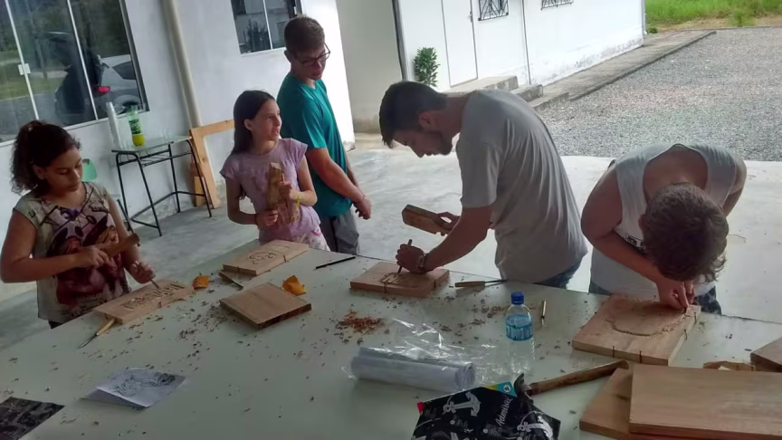 Projeto Brincando com Arte ensina técnica do entalhe em madeira a crianças