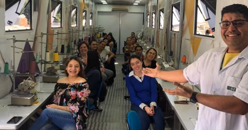 A estrutura é do Senai Móvel e dois cursos foram realizados no último ano: de panificação e de corte e costura. A intenção é oferecer qualificação para inserção dos moradores no mercado de trabalho ou proporcionar a possibilidade de que famílias possam ter uma renda extra.