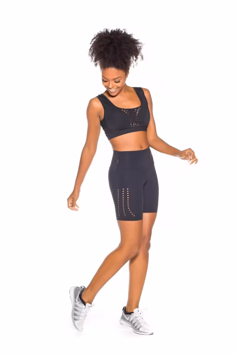 Na linha fitness, as peças da marca também fazem muito sucesso. São três coleções por ano que refletem as principais tendências do mercado. “Temos a nossa estilista que faz todo o trabalho de desenvolvimento das peças dentro das principais tendências. O fitness hoje é moda”, destaca Raquel.